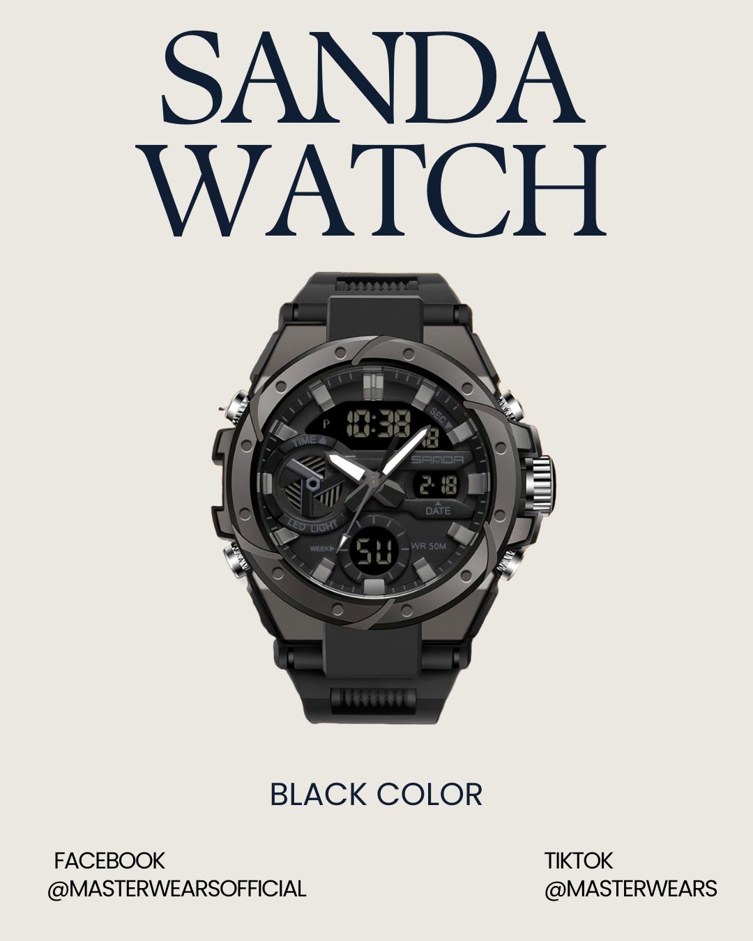 Upgrade your everyday style with the bold and rugged SANDA Black Sports Watch. Designed for men who demand performance and attitude, this watch combines analog and digital displays in a powerful, modern design.